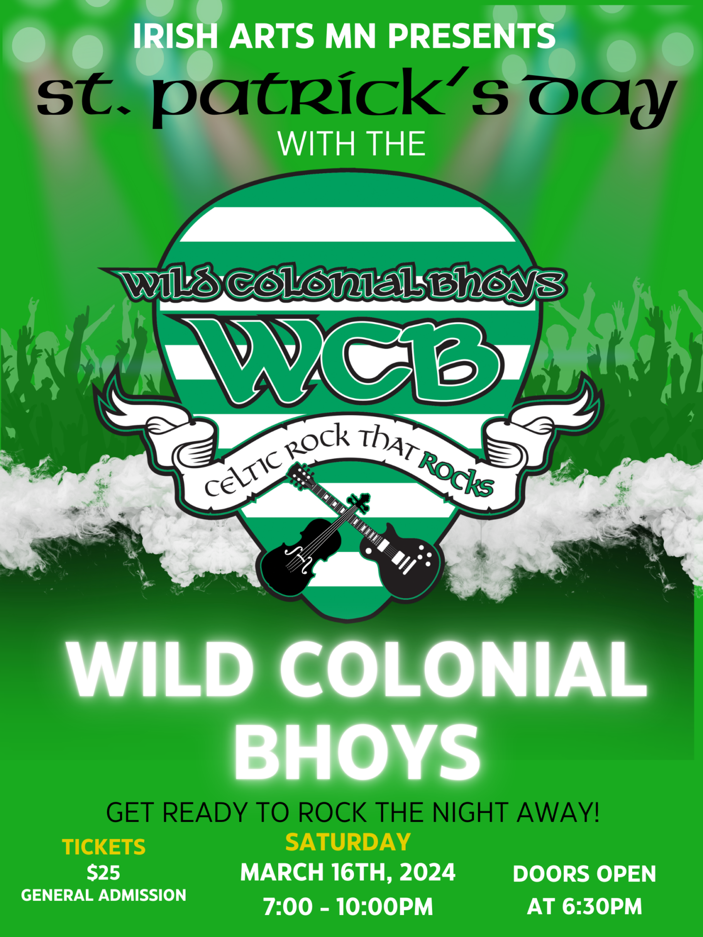 Irish Arts MN is excited to be hosting a St. Patrick’s Day (weekend) concert featuring Minnesota’s very own, Wild Colonial Bhoys!